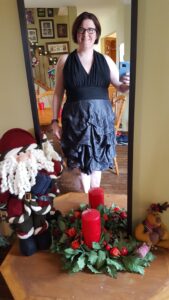 I’m a little behind on this update, as I haven’t had much to update. We’ve been really busy getting ready for Christmas and so most things went by the wayside. The healing process is still going really well, surgery wise. My incisions bother me less and less every day and my new bras make me feel more normal. I’ve started going through my clothes as there are a lot of things that don’t fit me anymore. There are also things that look better on me now than they ever did. Case in point: this dress I made a few years ago. The ability to wear it without a bra excites me.